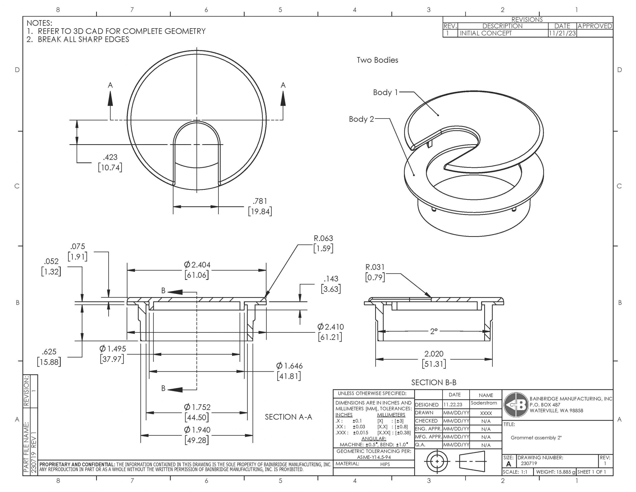 Plastic 2-3/8″ 60mm Cord Grommet removable lid