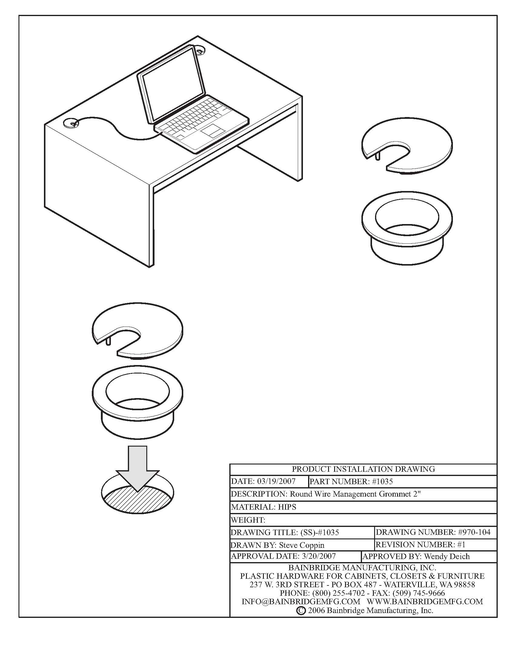Plastic 5″ round finishing grommet to provide clean finished look. Grommet often used to line trash and recycle receptacles. *Formerly 1047