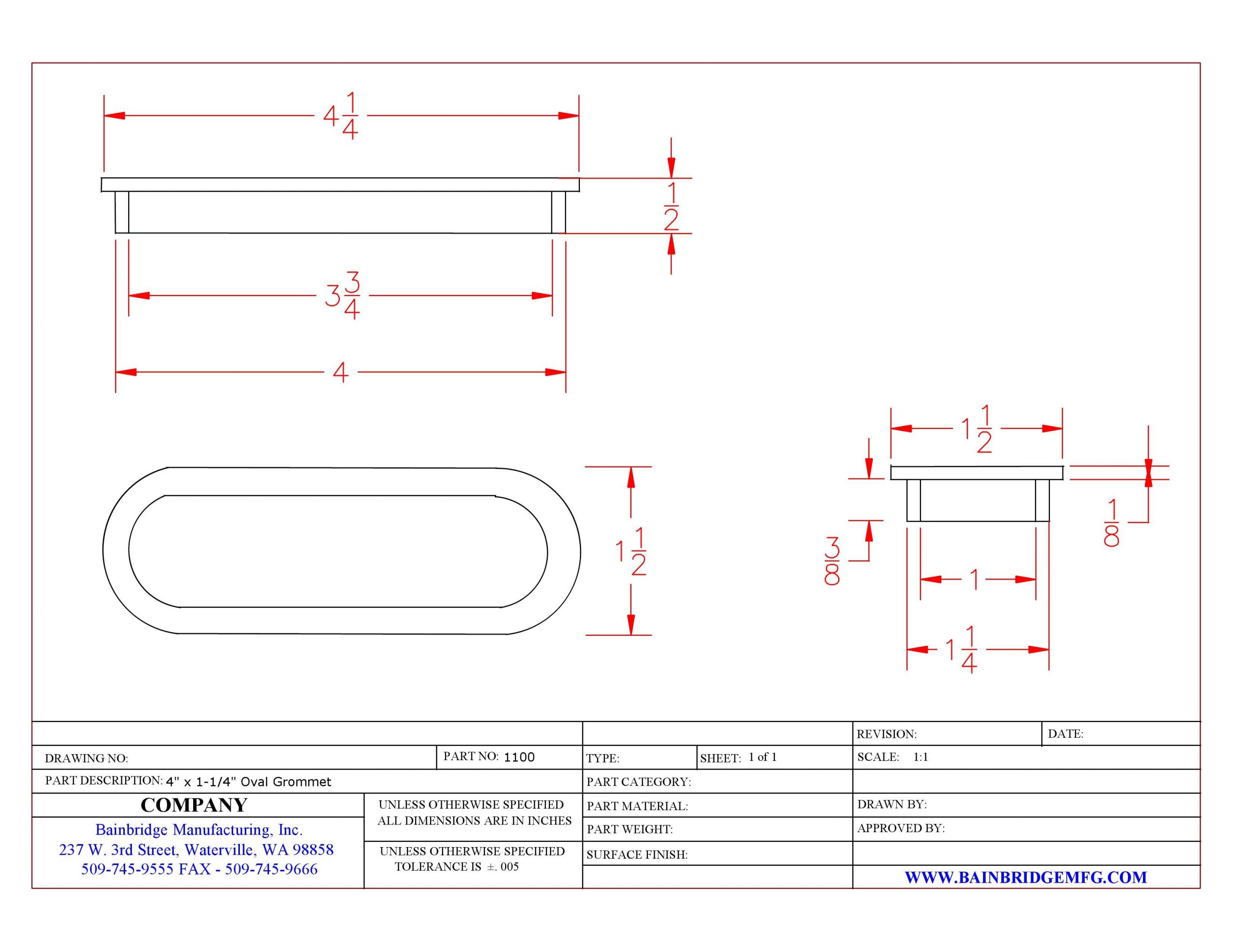 Oval Finishing Grommet 4″ X 1-1/4″ X 5/8″ deep – glue in place 1/4″ lip in top