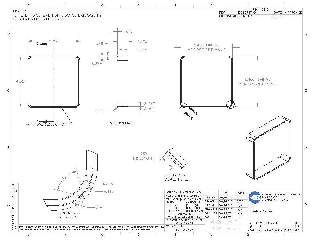 Rectangular Finishing Grommet 4-11/16″ X 8-1/8″ 1″ deep no rim