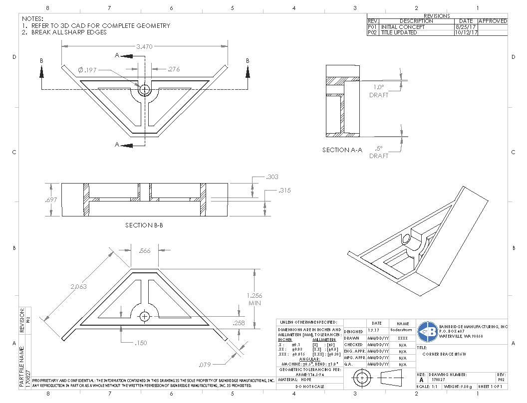 3″ X 9/16″ X 9/16″ corner brace.