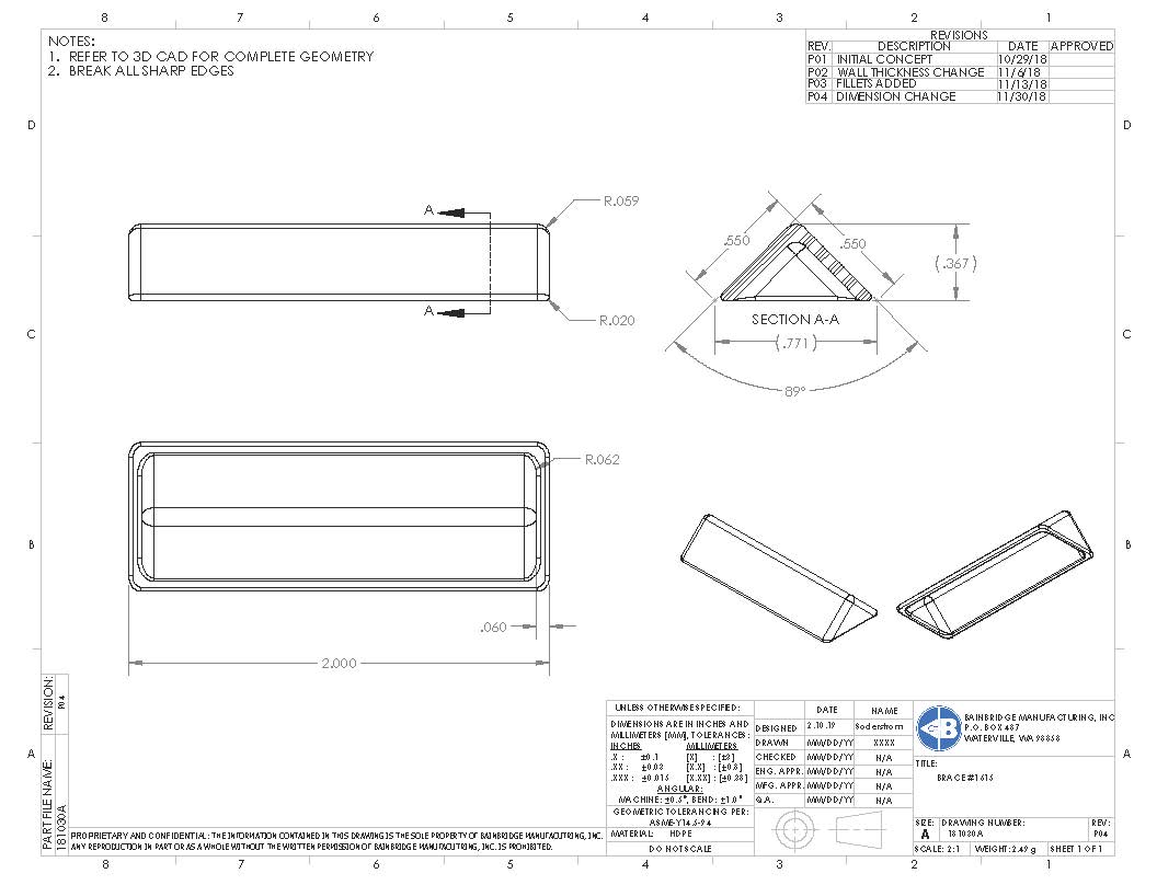 3″ X 9/16″ X 9/16″ corner brace.