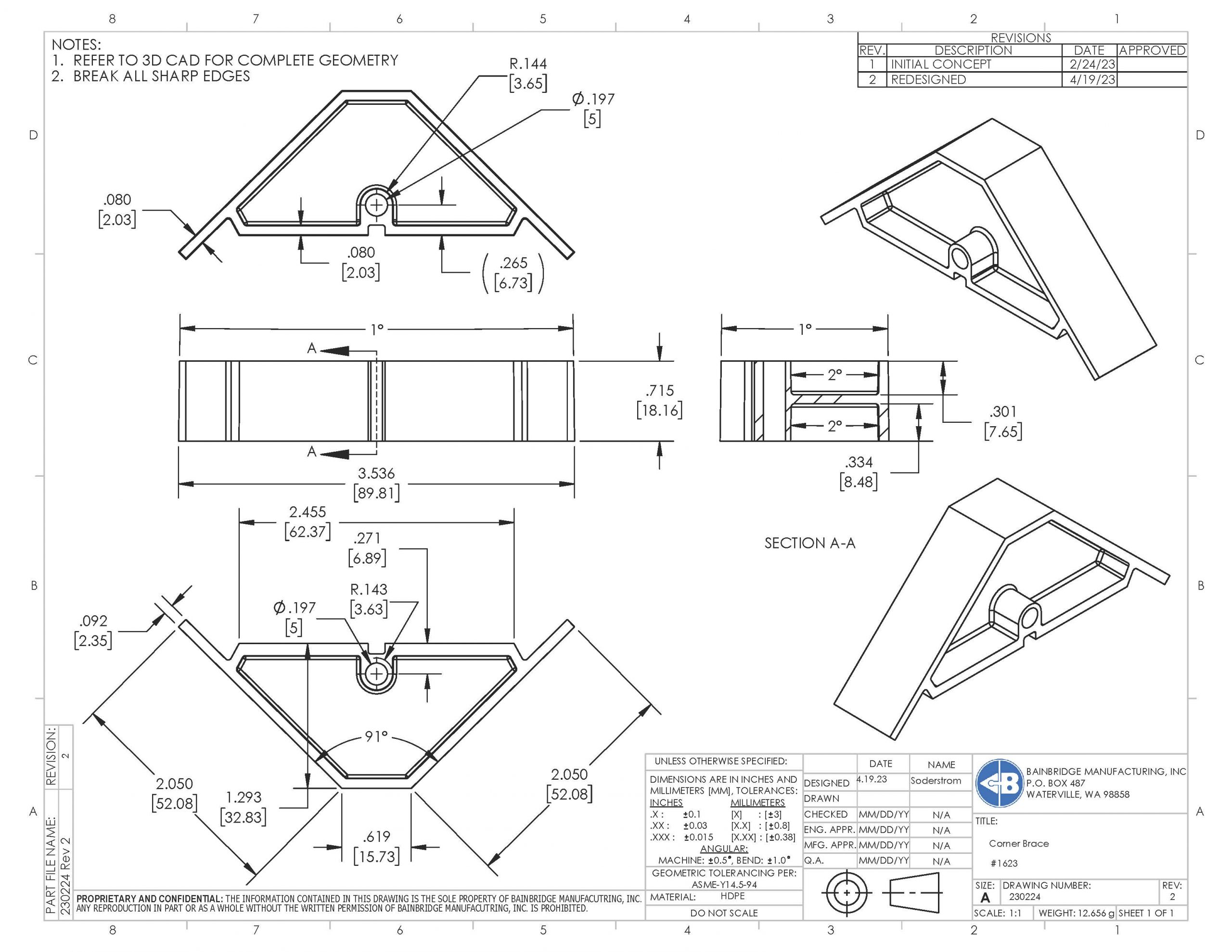 2-1/2″ X 2-1/2″ X 3/4″ corner brace w/ tabs. Reversable.