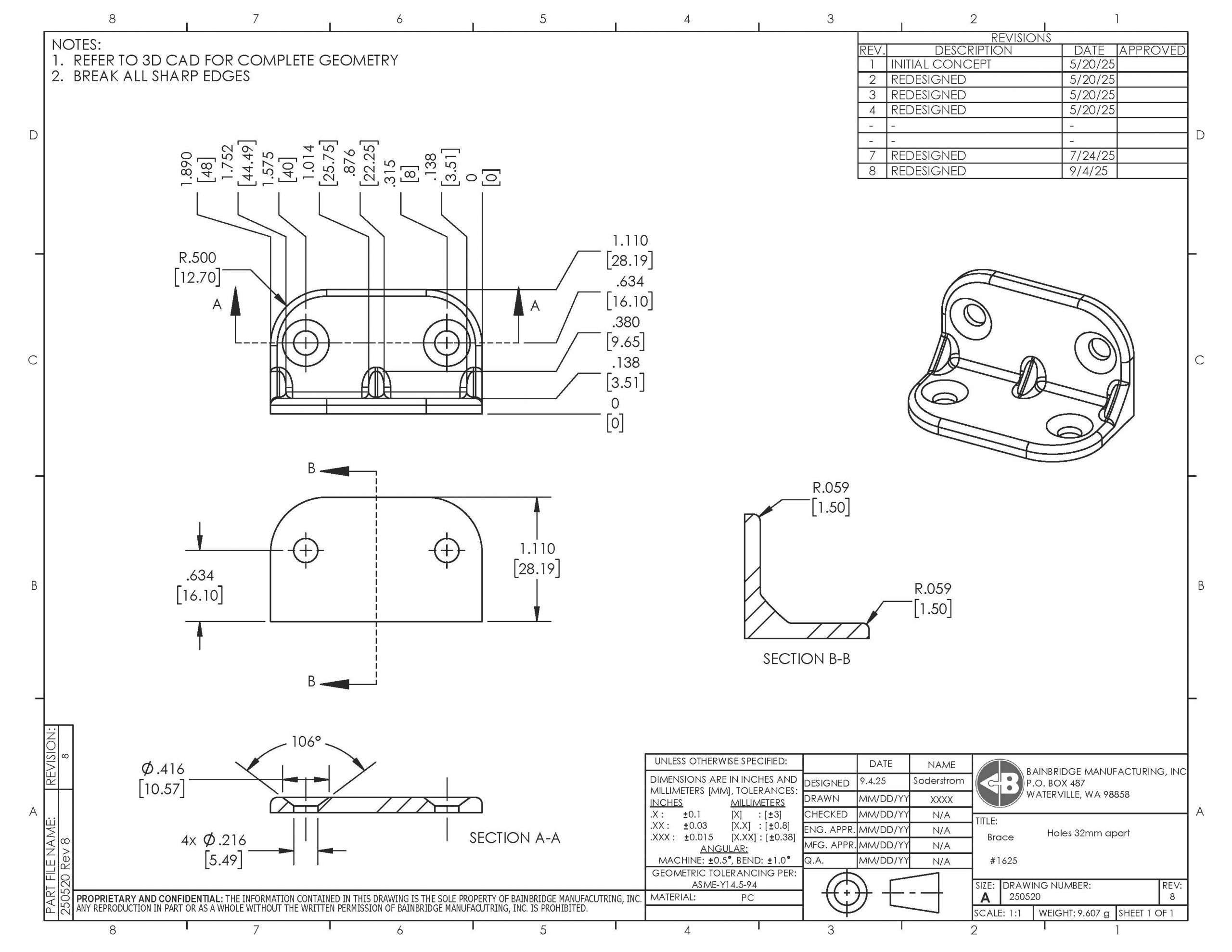3″ X 3″ X 7/8″ corner brace w/ screw holes