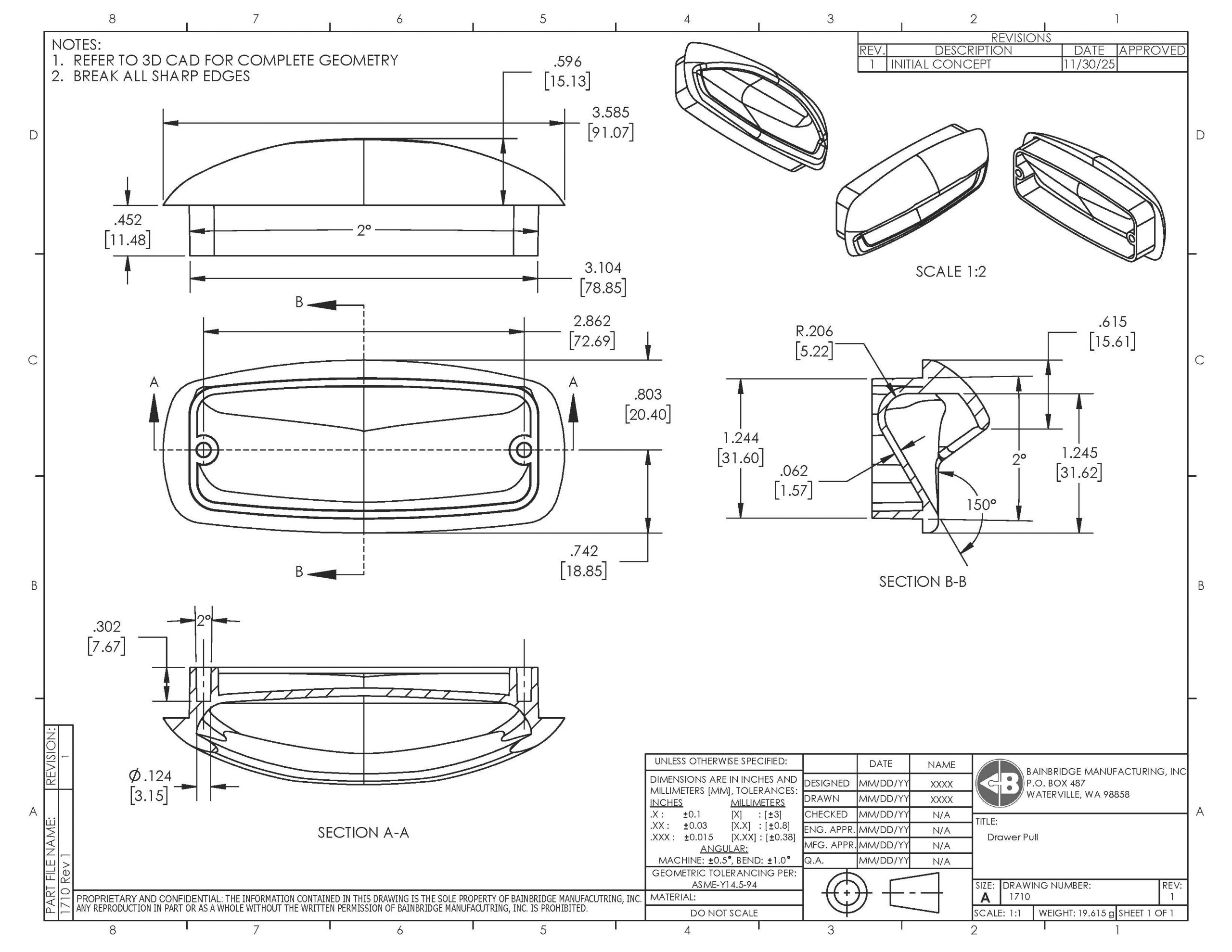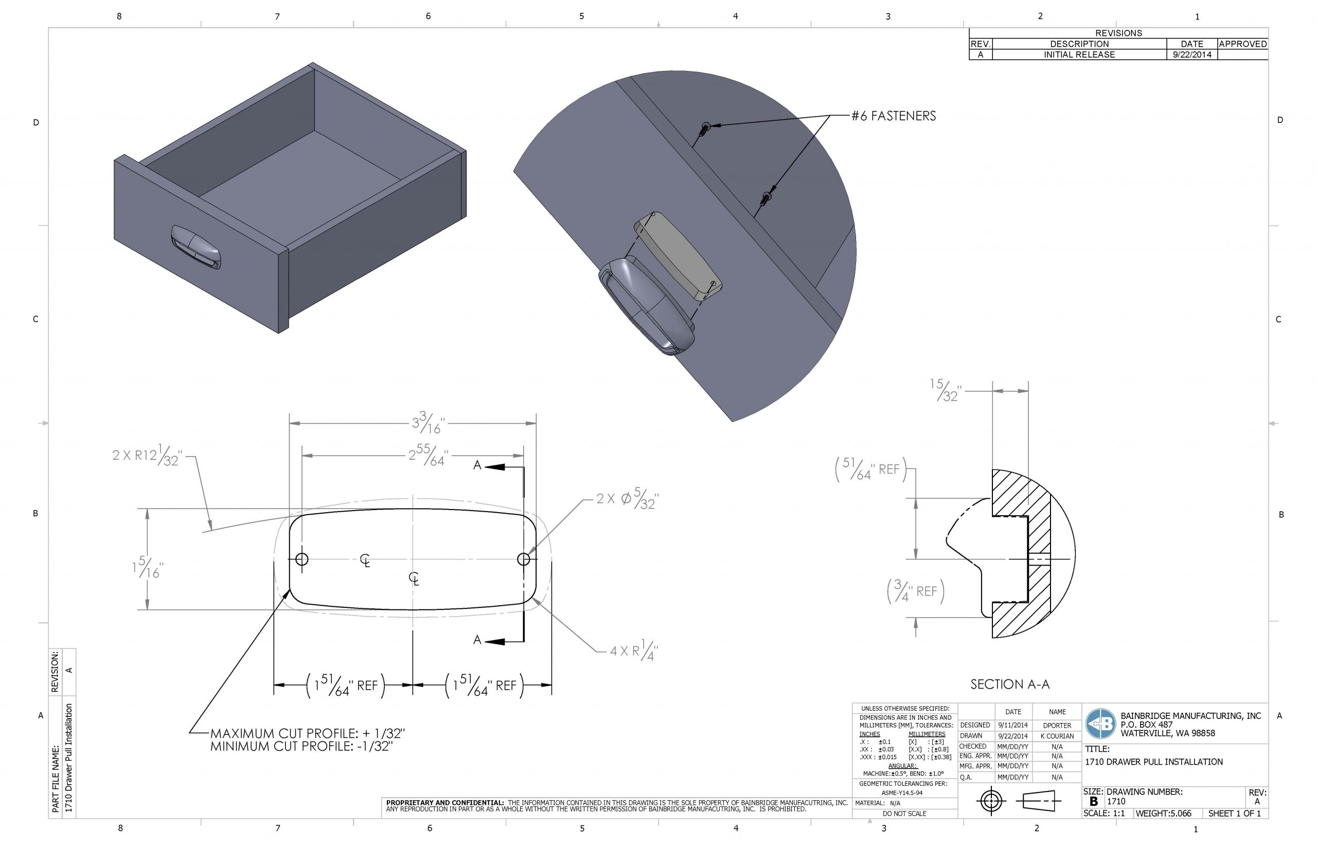 Plastic recessed drawer pull for cabinets, closets & furniture with deep molded grip for finger comfort. Rear of drawer pull has two holes sized for #6 wood screws (not included).