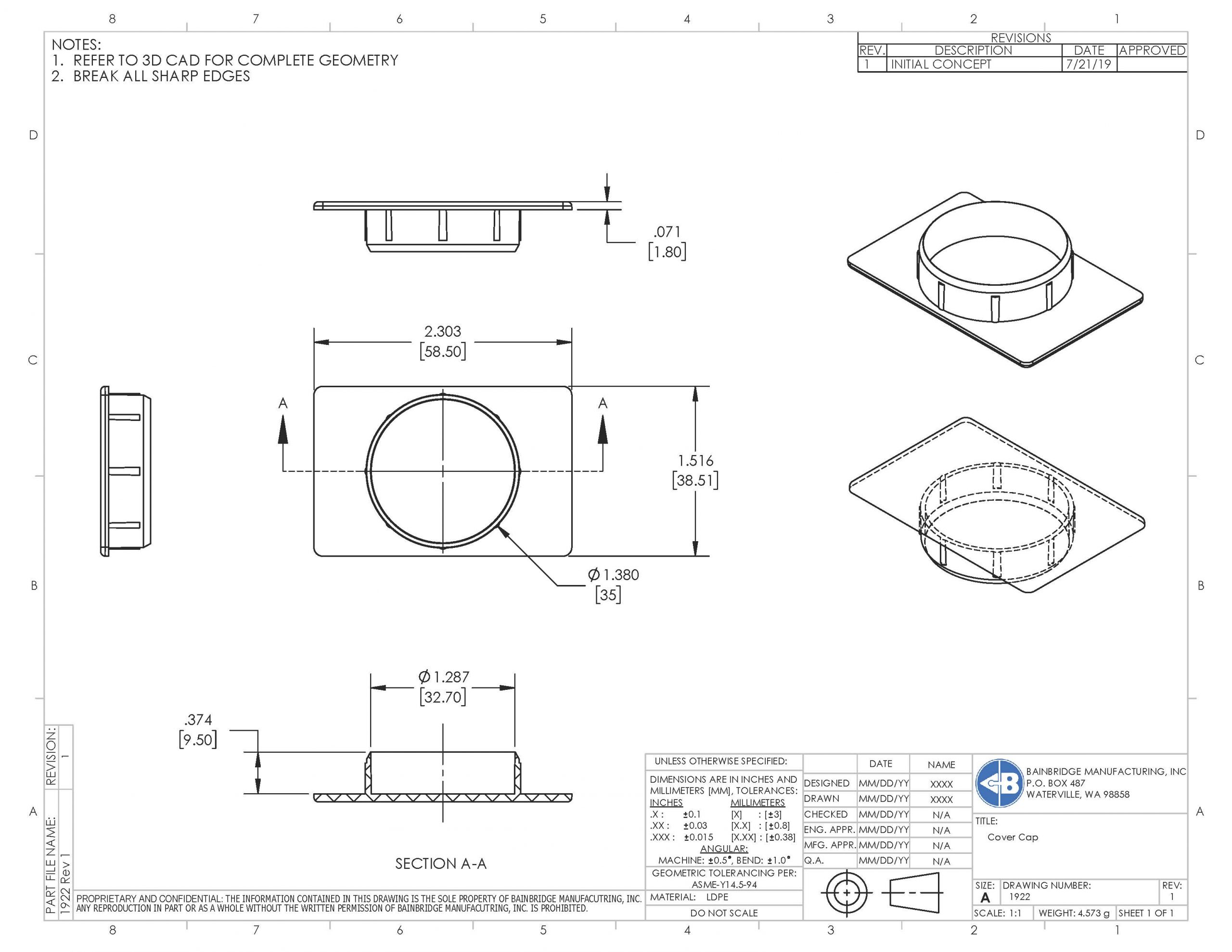 Plastic cap with textured ​finish to cover Castle Tool mortise machine hole.