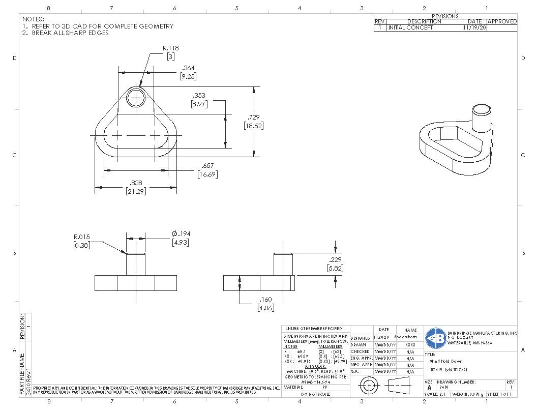 Plastic shelf hold down clip with 3mm peg designed for 5/8″ or 3/4″ thick shelving. Designed to be used with 5mm steel spoon shelf supports. Formerly Part #1956