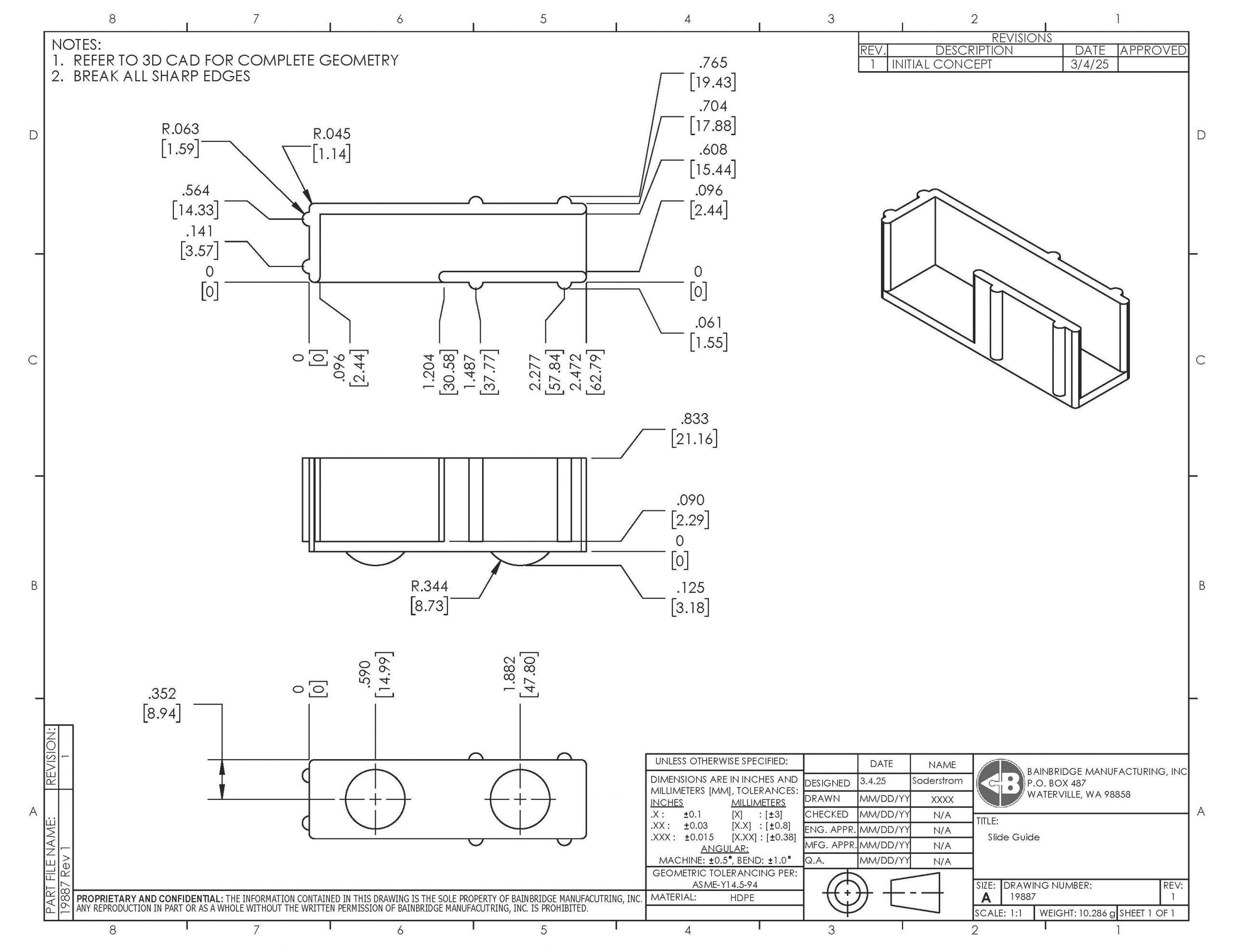 Furniture Slide Glide 2-5/8″ Long With 2 Slide Bumps, Snaps On 1/2″ Thick Material.