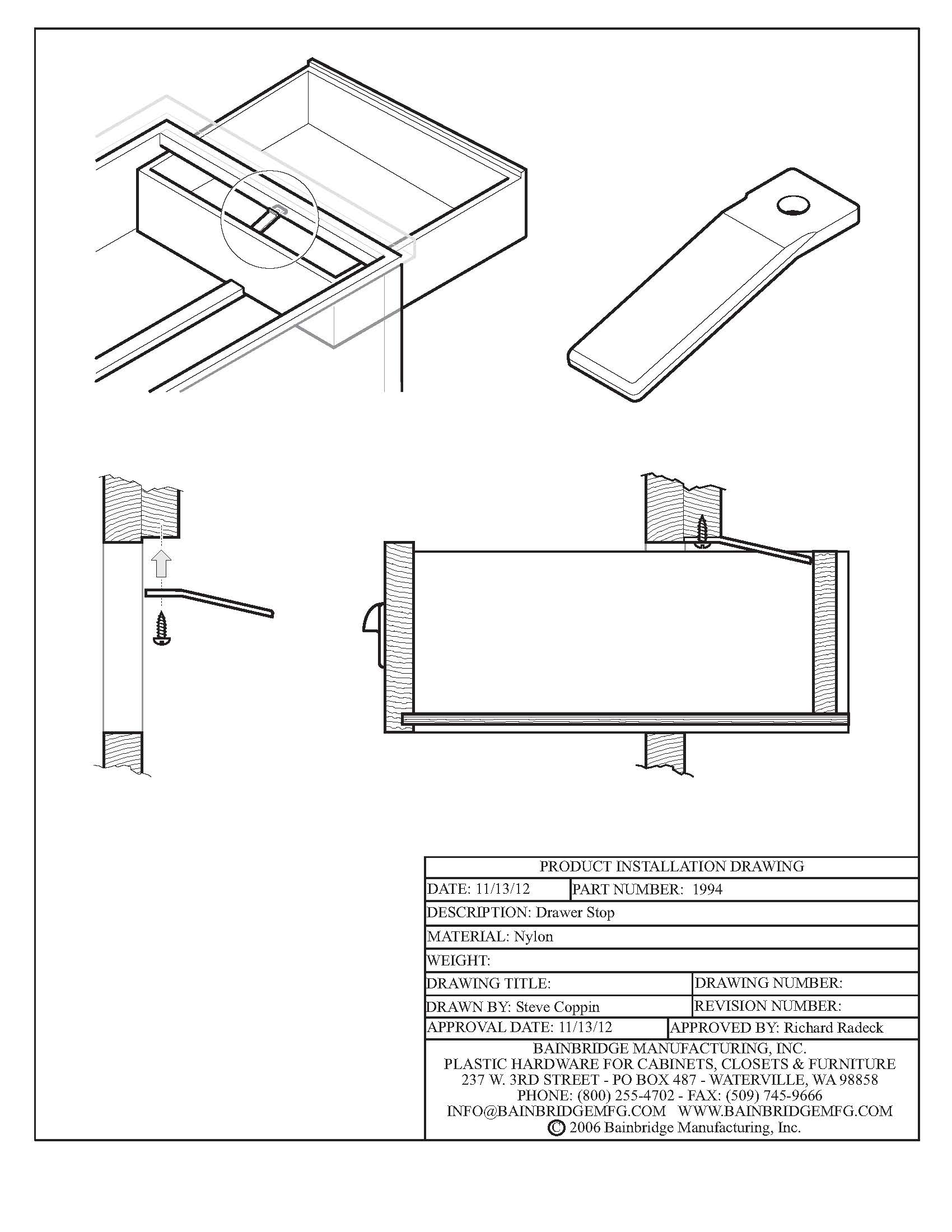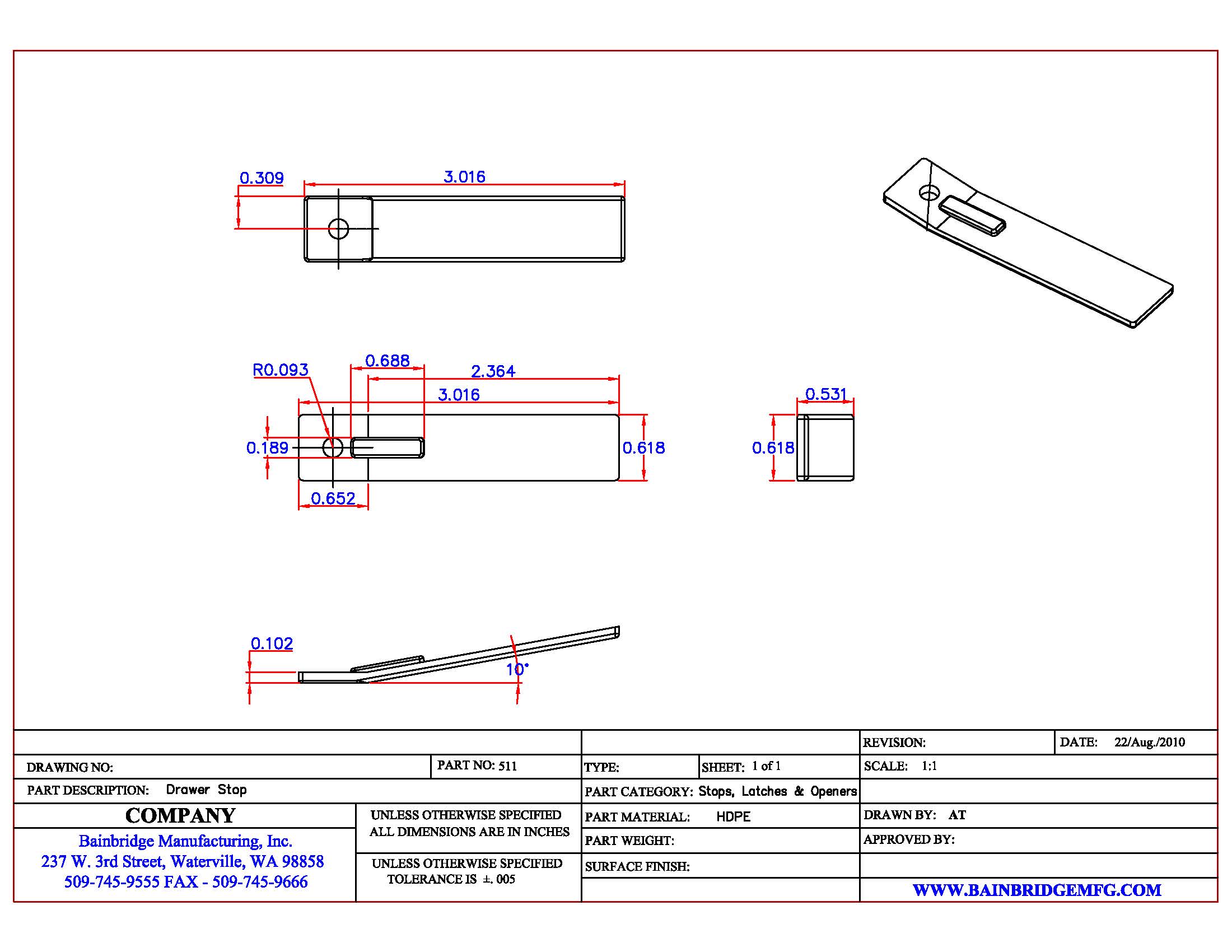 2-1/2″ Long Drawer Stop With Extra Rib For Strength