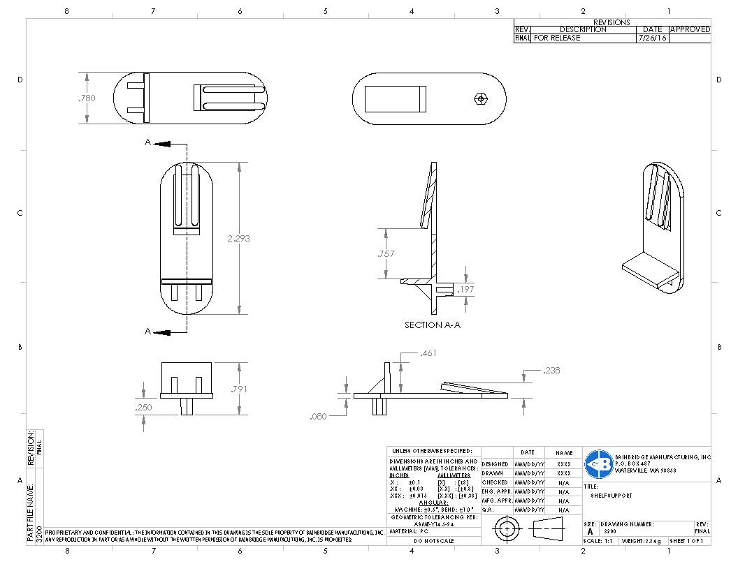 Locking Shelf Support With 5mm Peg For 5/8″ Thick Shelf. Available in Left and Right, as well as Standard varieties. All varieties sold seperately.