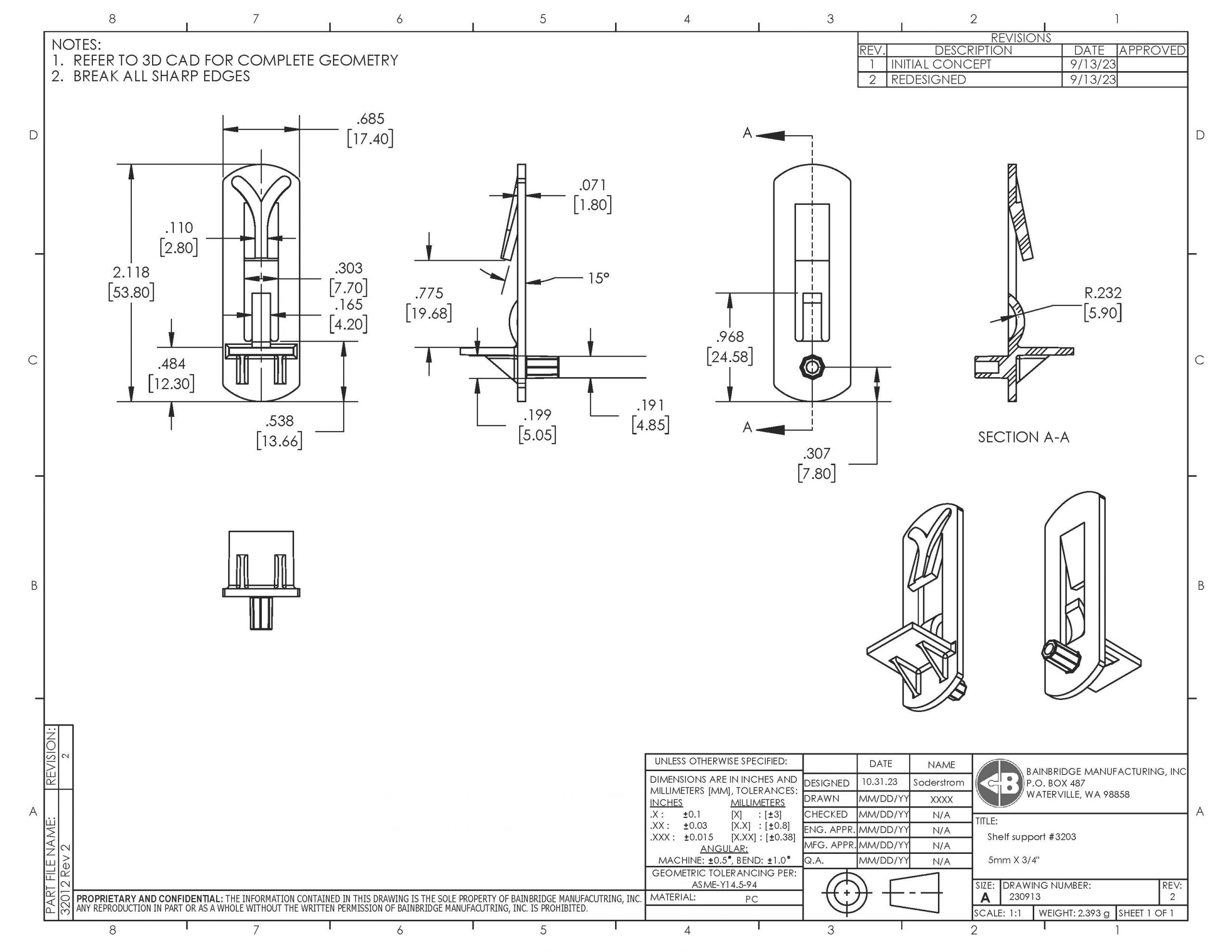 Locking shelf support with 5mm peg for 3/4″ thick shelf.
