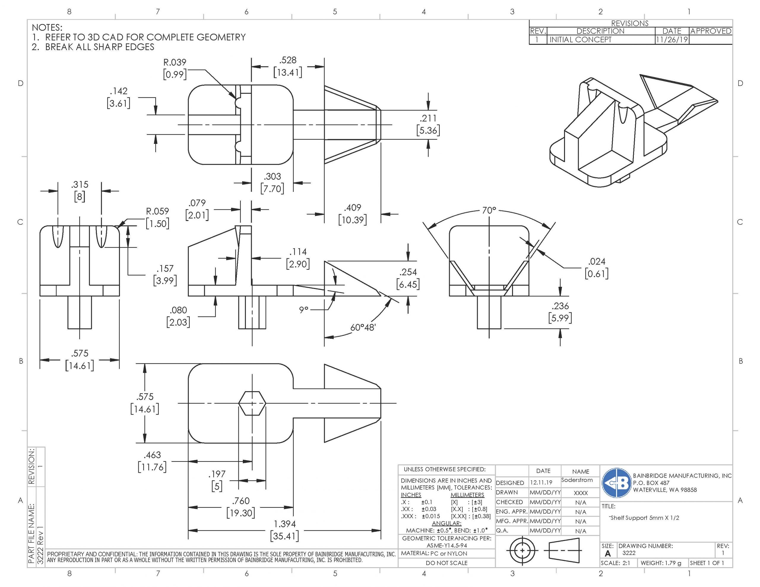 Locking shelf support with 5mm peg for 3/4″ thick shelf.