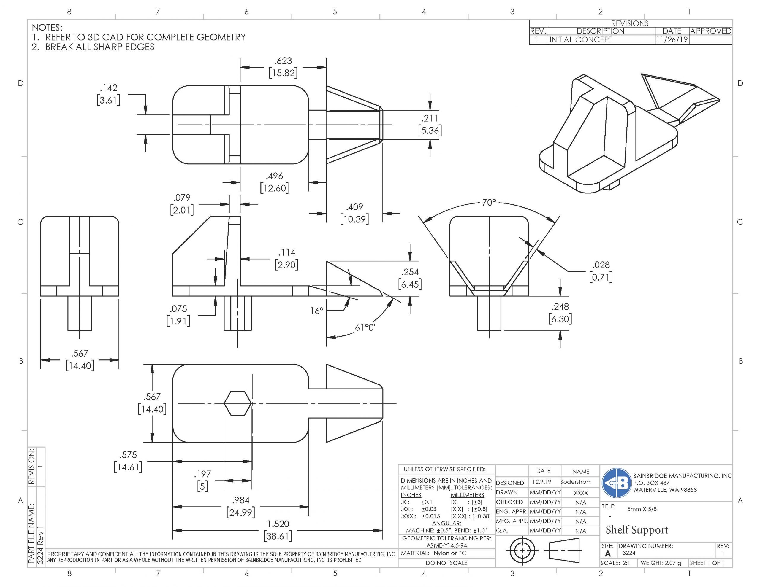 Locking shelf support with 5mm peg for 3/4″ thick shelf.