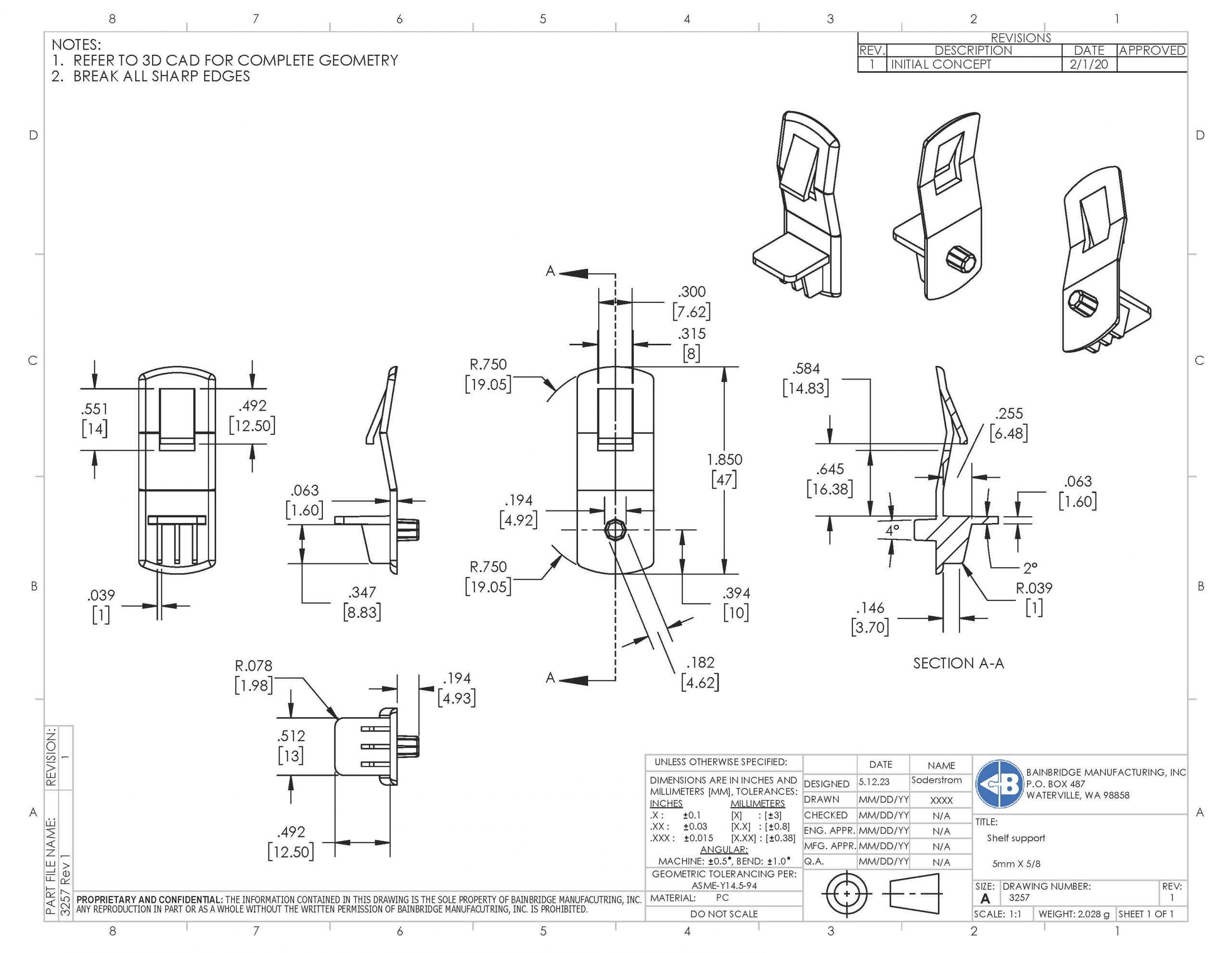 Locking Shelf Support With 1/4″ Peg For 1/2″ Thick Shelf
