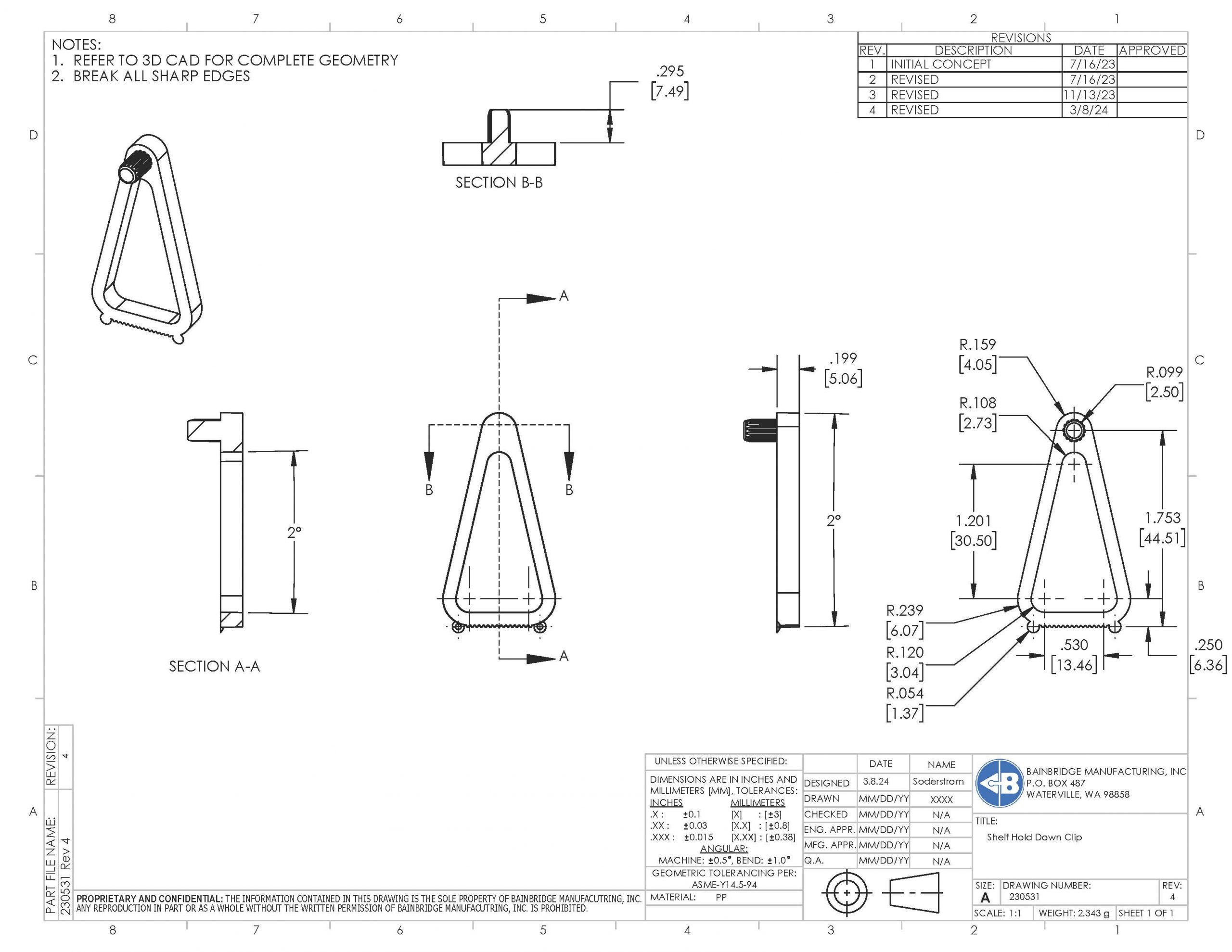 Plastic shelf hold down shipping clip with 5mm peg and round ends designed for 5/8″ or 3/4″ thick shelving. Designed to be used with 5mm steel spoon shelf supports. Formerly Part #19563
