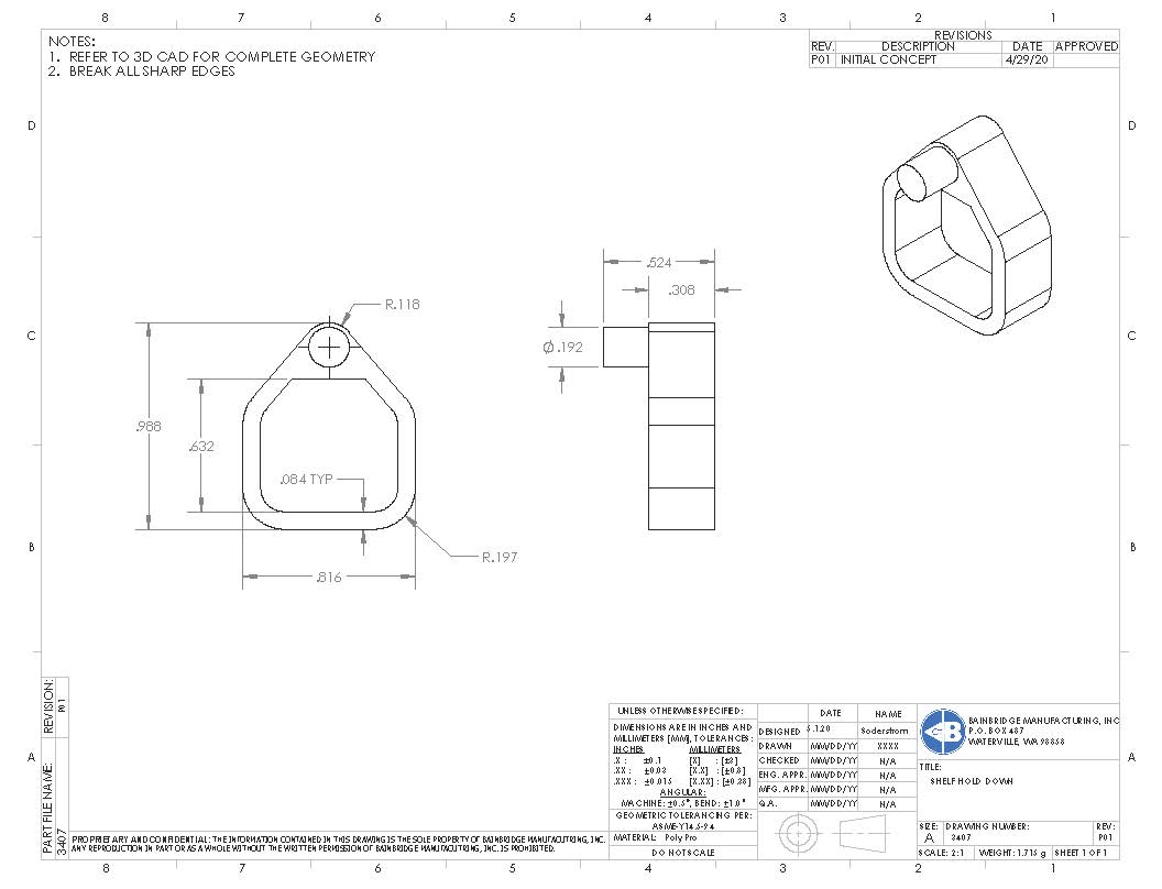 Shelf securing hold down 1/8″ clip with 5mm peg and lead-in. For 3/4″ shelf.