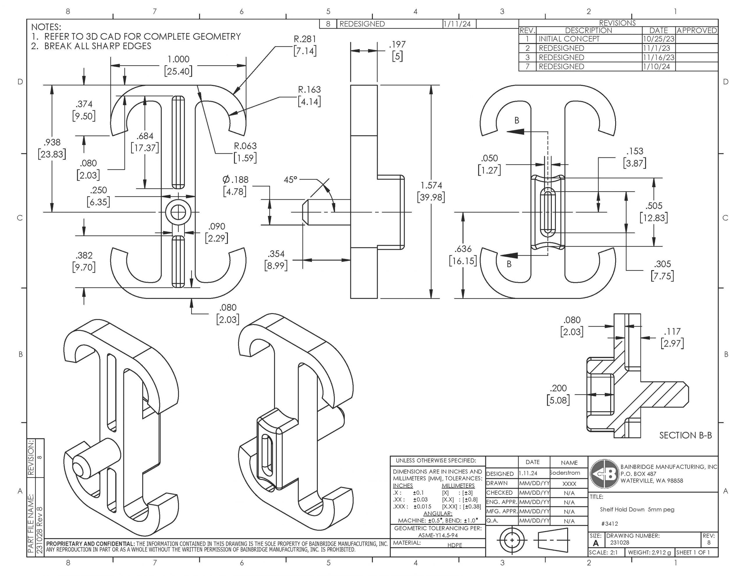 Plastic shelf hold down shipping clip with 5mm peg and round ends designed for 5/8″ or 3/4″ thick shelving. Designed to be used with 5mm steel spoon shelf supports. Formerly Part #19563