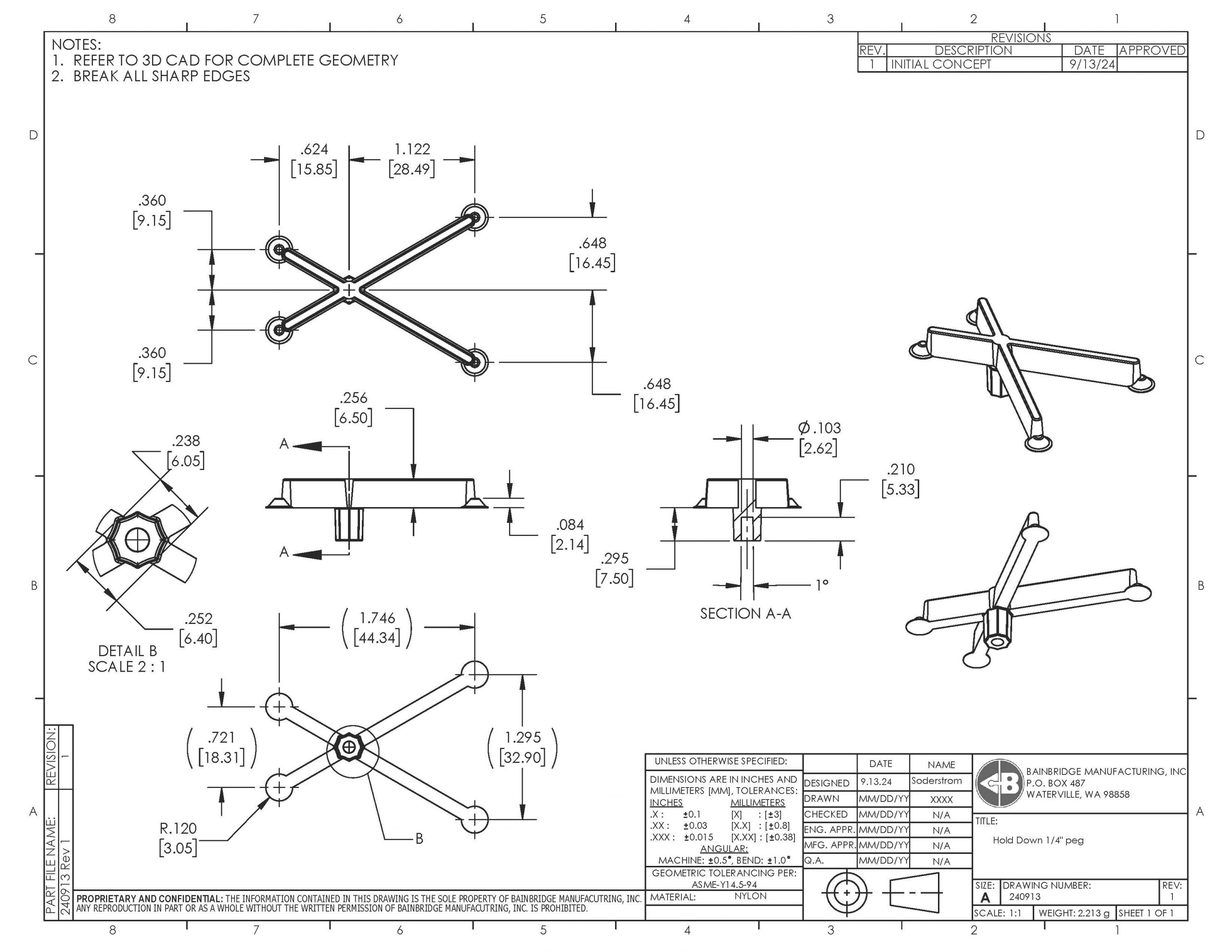 Plastic shelf hold down shipping clip with 5mm peg and round ends designed for 5/8″ or 3/4″ thick shelving. Designed to be used with 1/4″ steel spoon shelf supports.