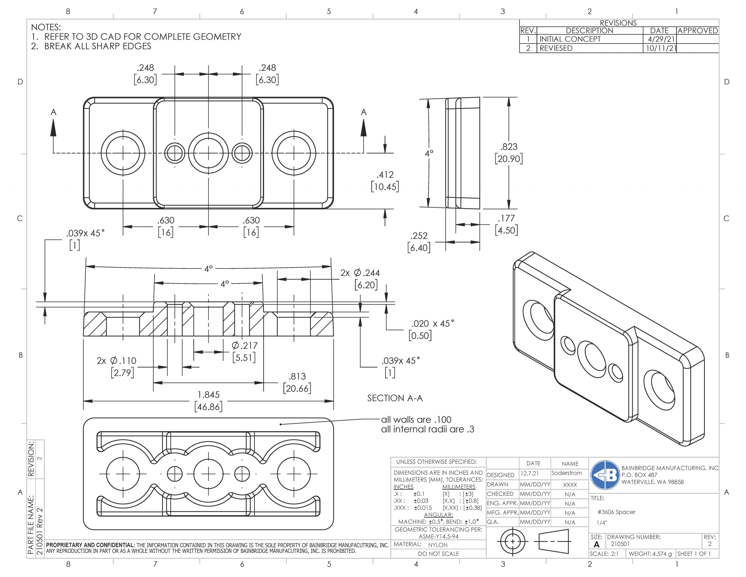 3606 Drawer Slide Spacer 1/4″ $219.00 / 500