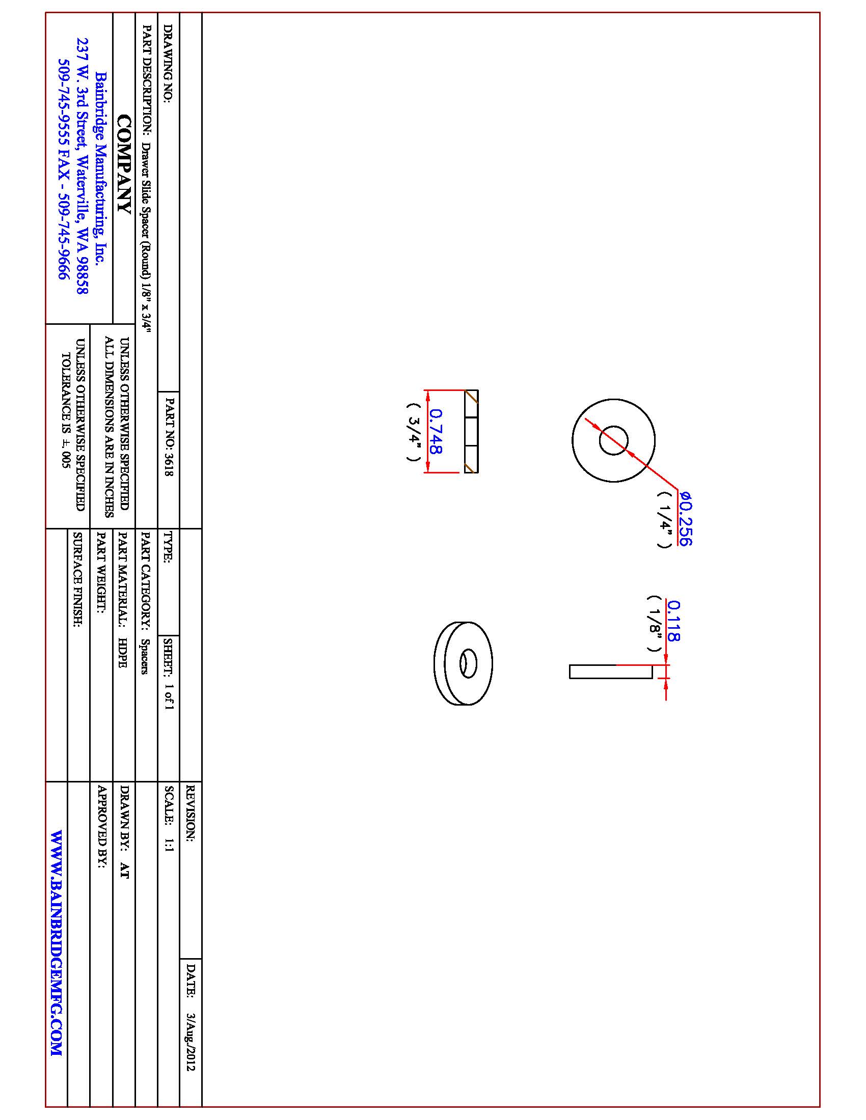 1/8″ thick round spacer with 3/4″ OD and 1/4″ ID.
