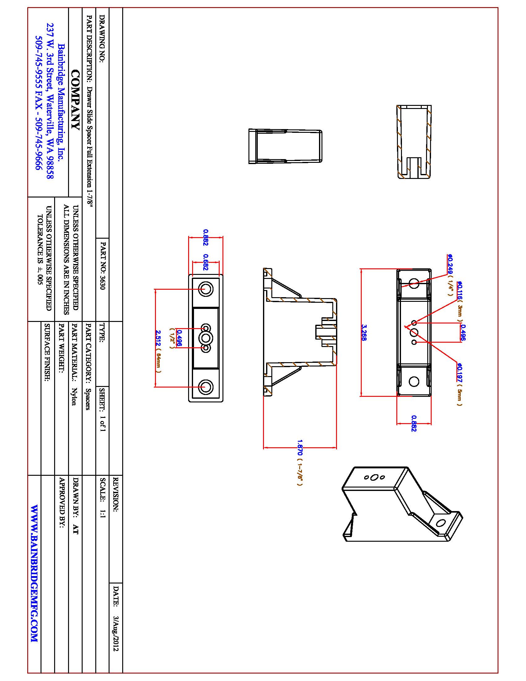3630 Drawer Slide Spacer 1-7/8″ $190.00 / 250