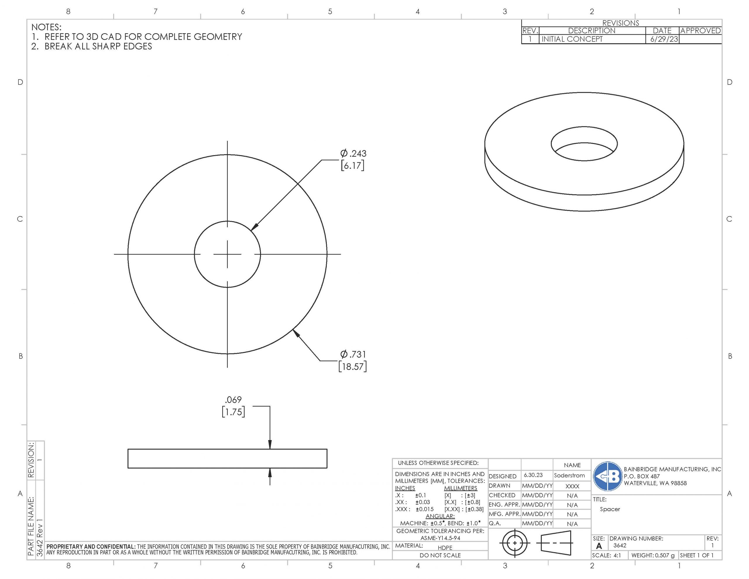 Plastic 1/16″ thick round spacer with 3/4″ OD.