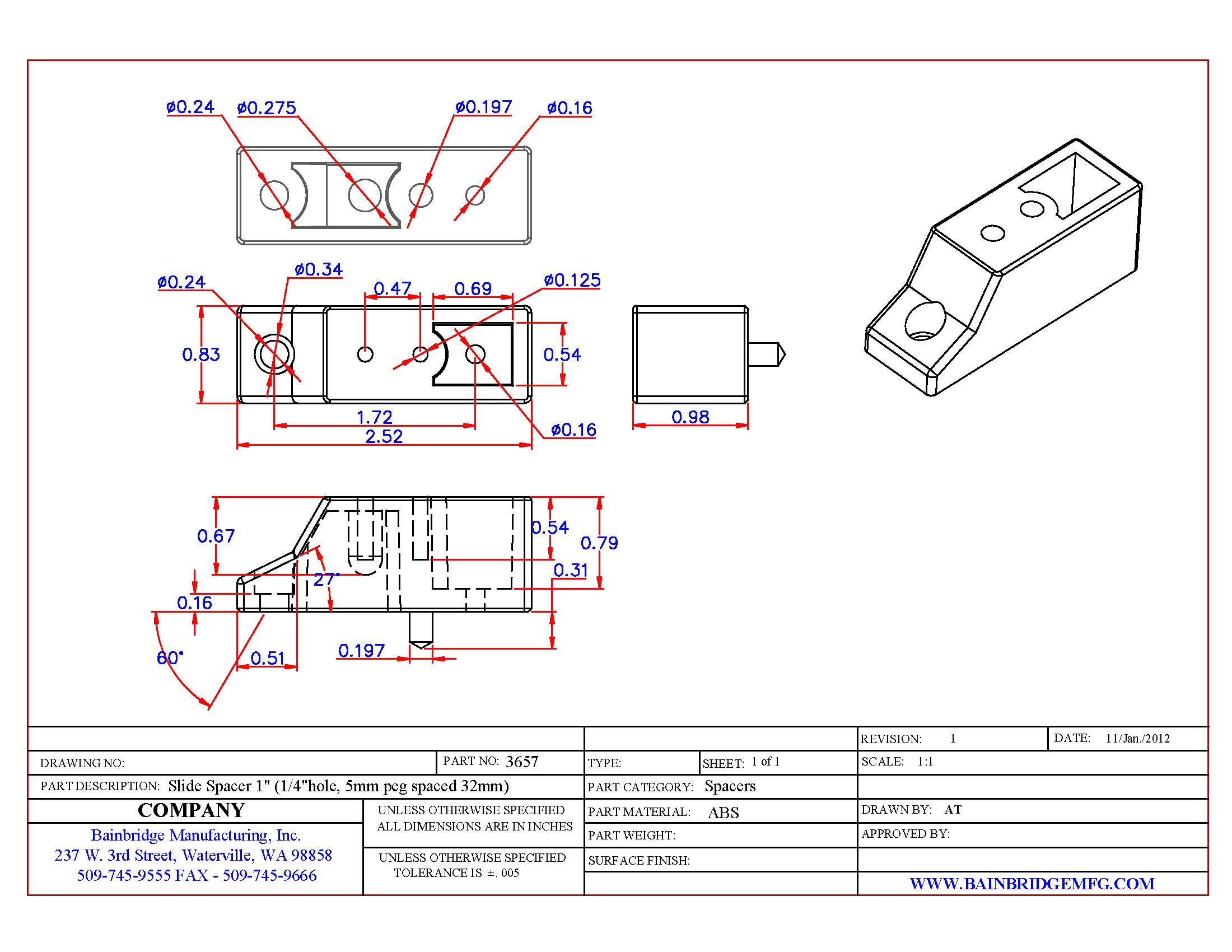 3657 Drawer Slide Spacer1″ $265.00 / 500
