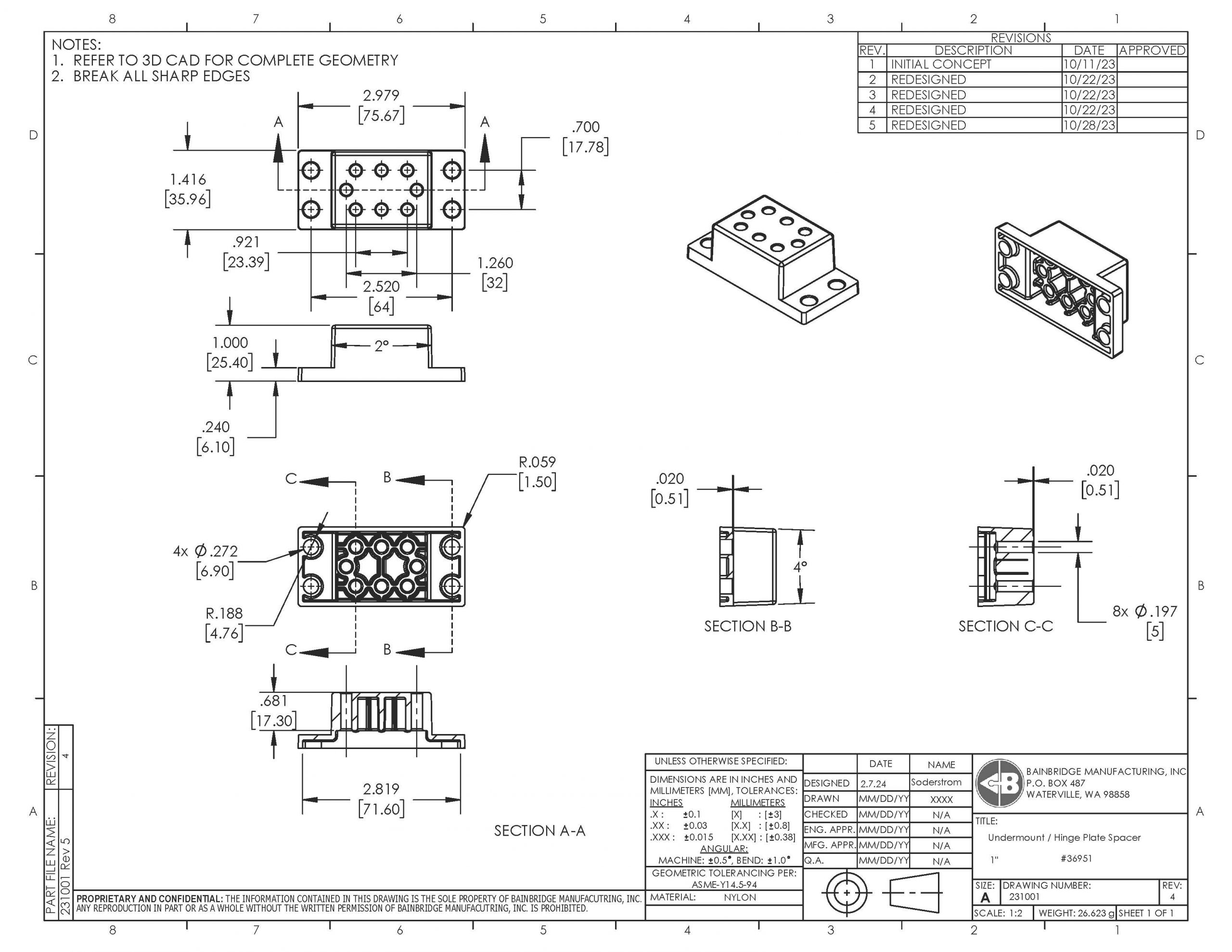 1″ Thick Undermount Drawer Slide Spacer, w/ 8 Holes