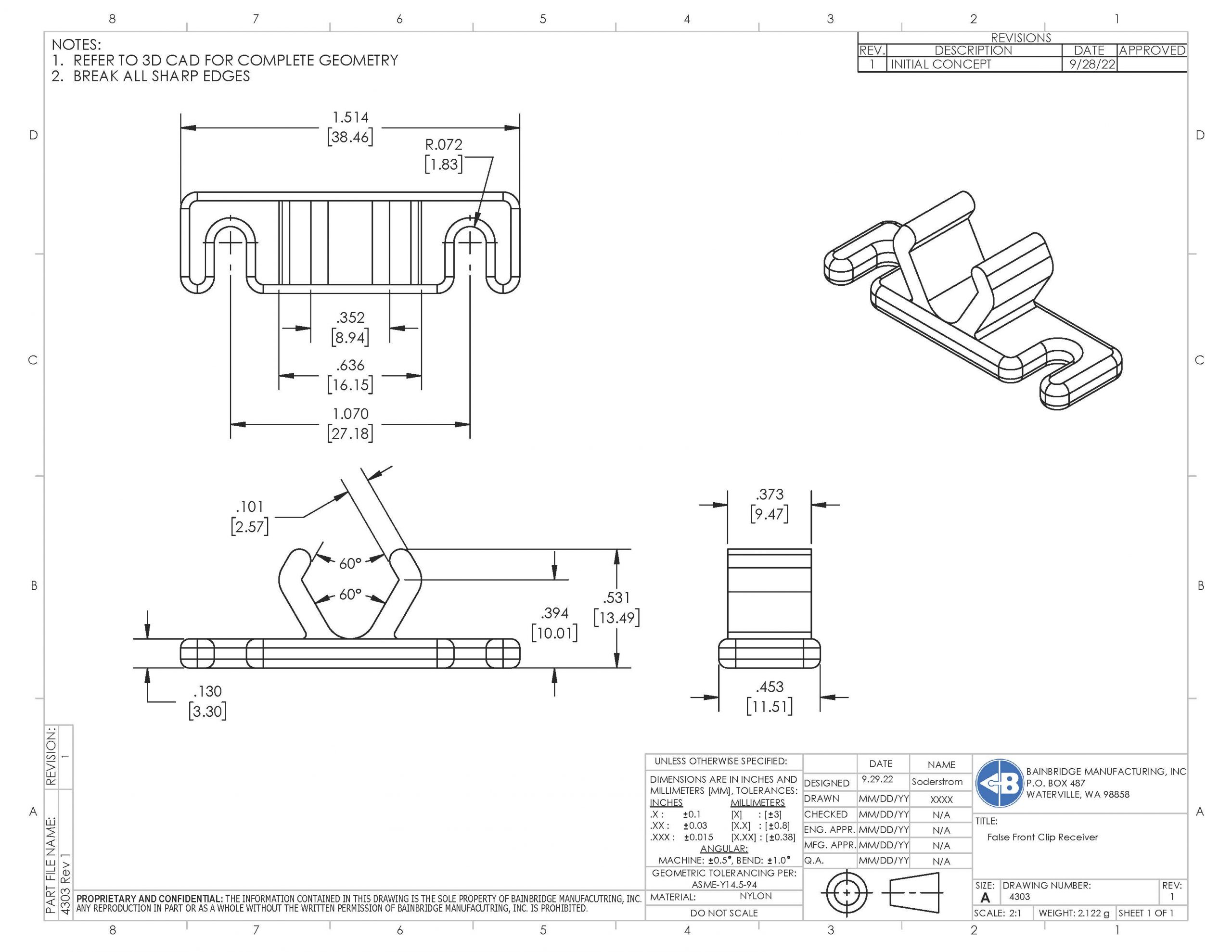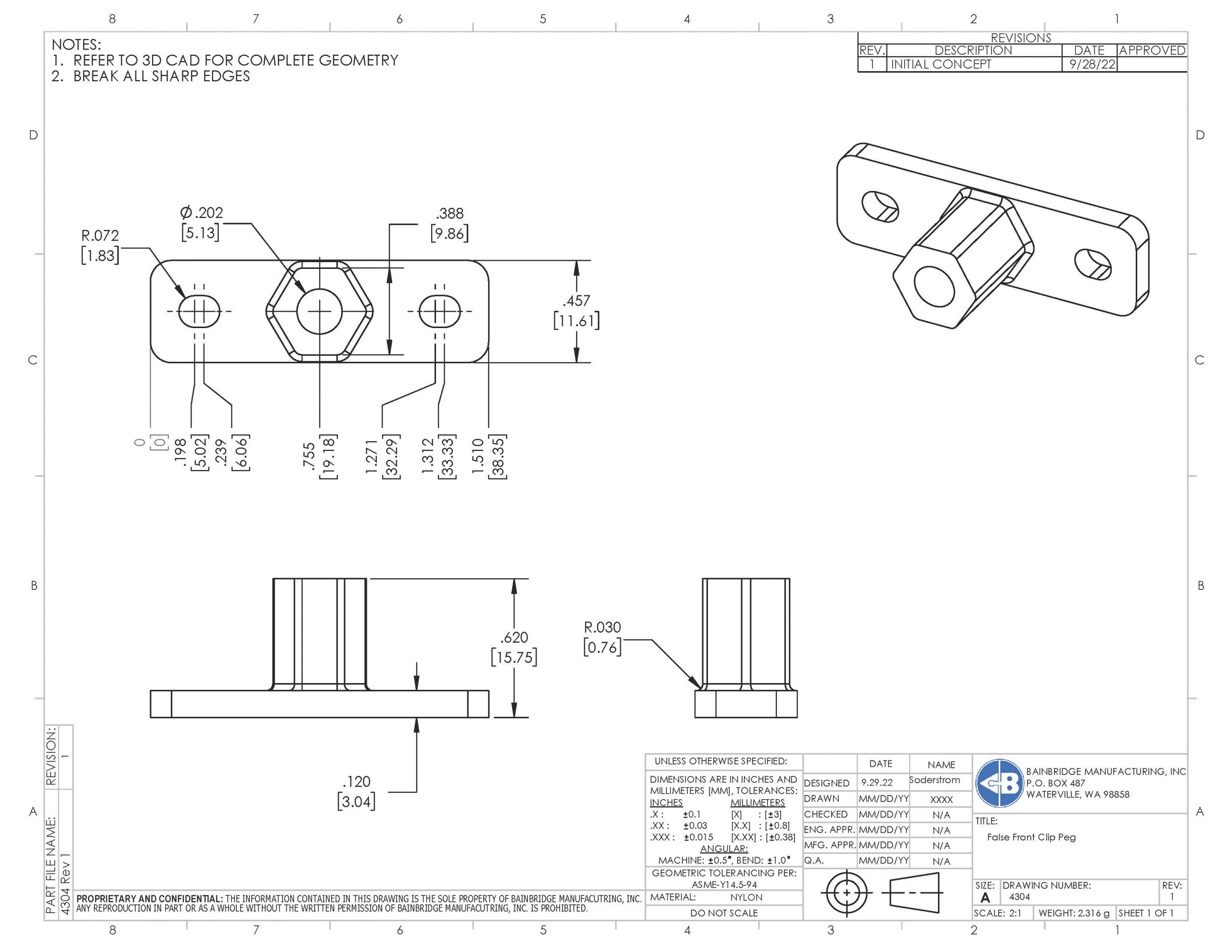 Plastic two piece False Front Snap Clip set used to secure false front panel in place. Pieces sold separately from each other.