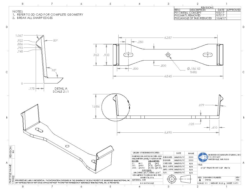 Plastic False Front Clip for attaching false front panel cabinet with 3/4″ thick face frame and 4-1/2″ drawer opening height. Flush mount to face frame using staples or screws. Easy 2 finger removal for future adjustments.
