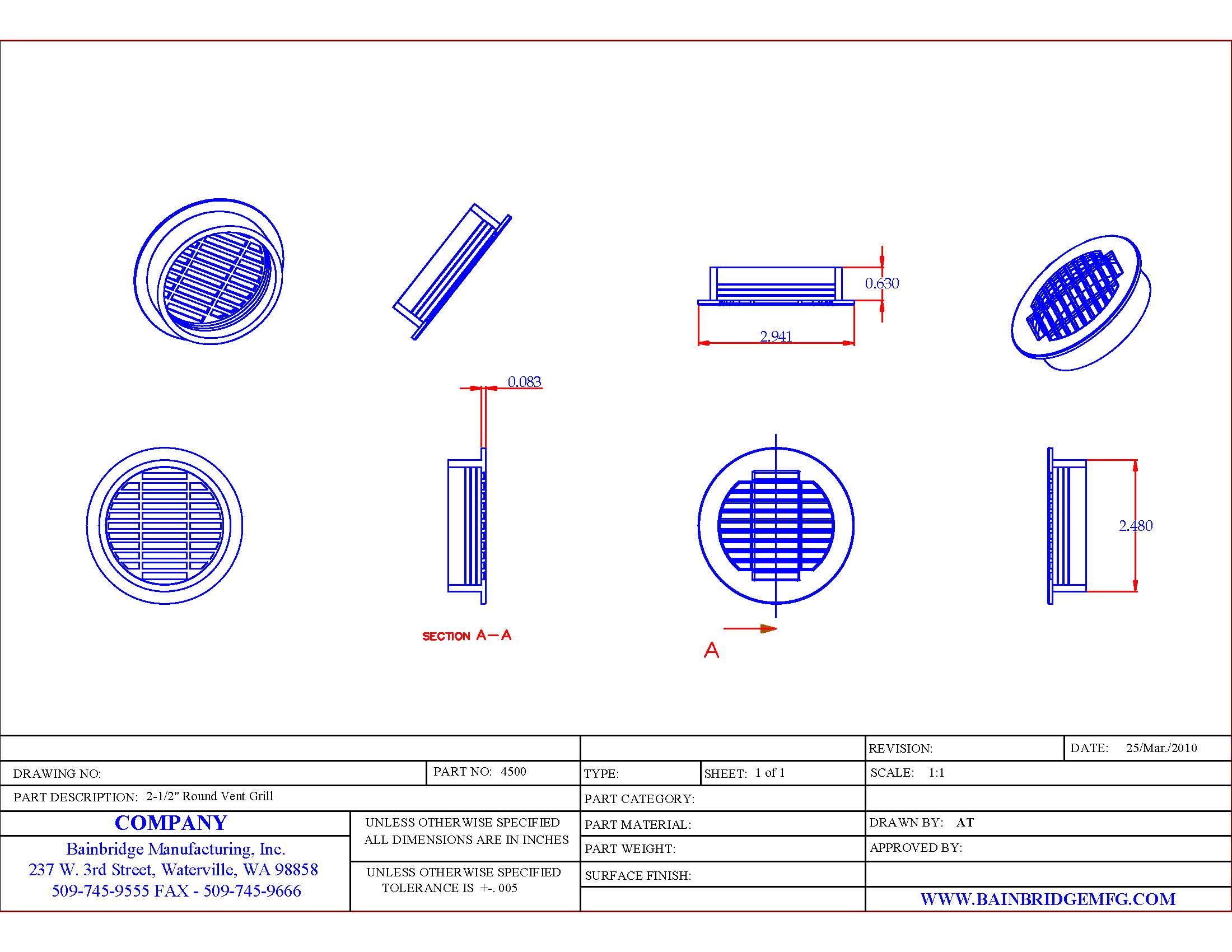 Round Plastic Vent Grill Fits 3″ Diameter Hole.