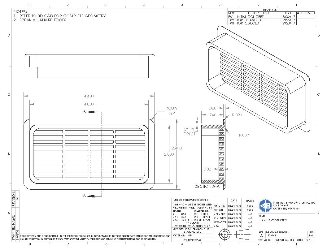 Plastic Vent Grill fits 2-7/16″ X 8-3/8″ hole.
