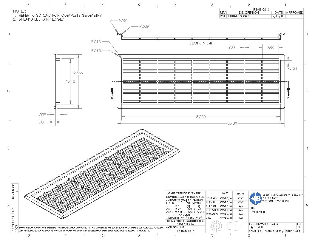 Plastic Vent Grill Fits 2-1/2″ X 10″ Hole. 3/8″ deep.