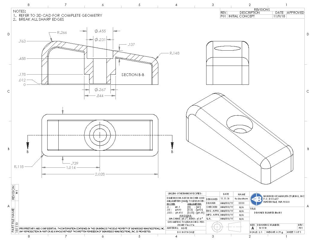 1-7/8″ X 7/16″ X 1-9/16″ Fixed Socket For Full Extension Drawer Slide