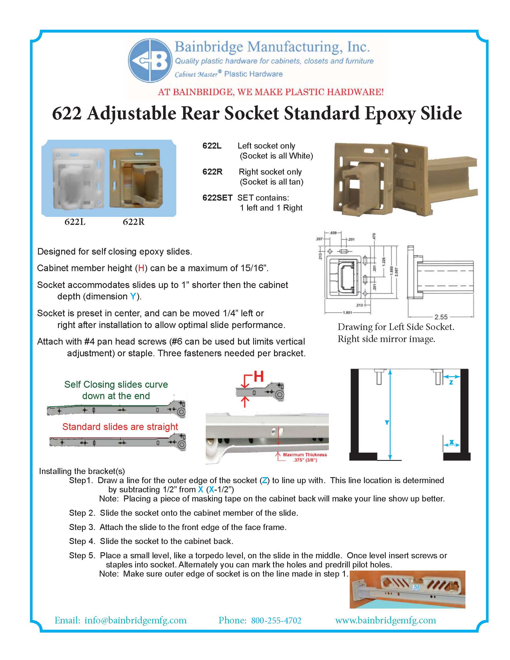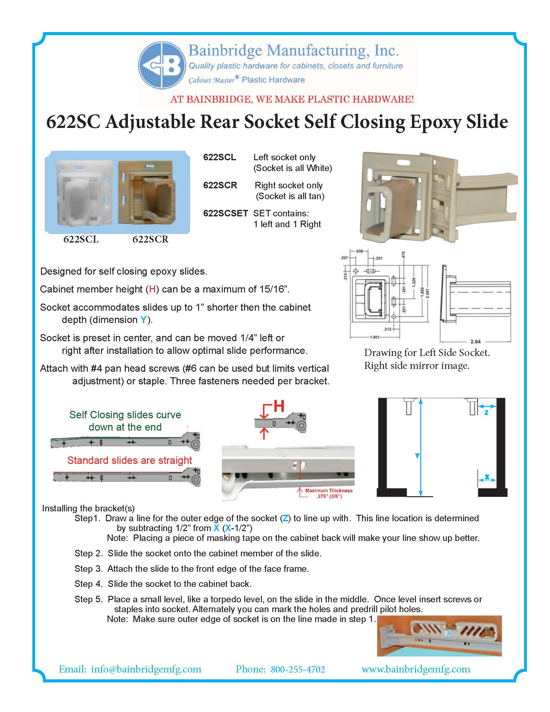 1″ X 7/16″ X 2-3/8″ Adjustable Socket. This is a set of left and right sockets; each side is packaged separately. This also come in standard and self-closing varieties.