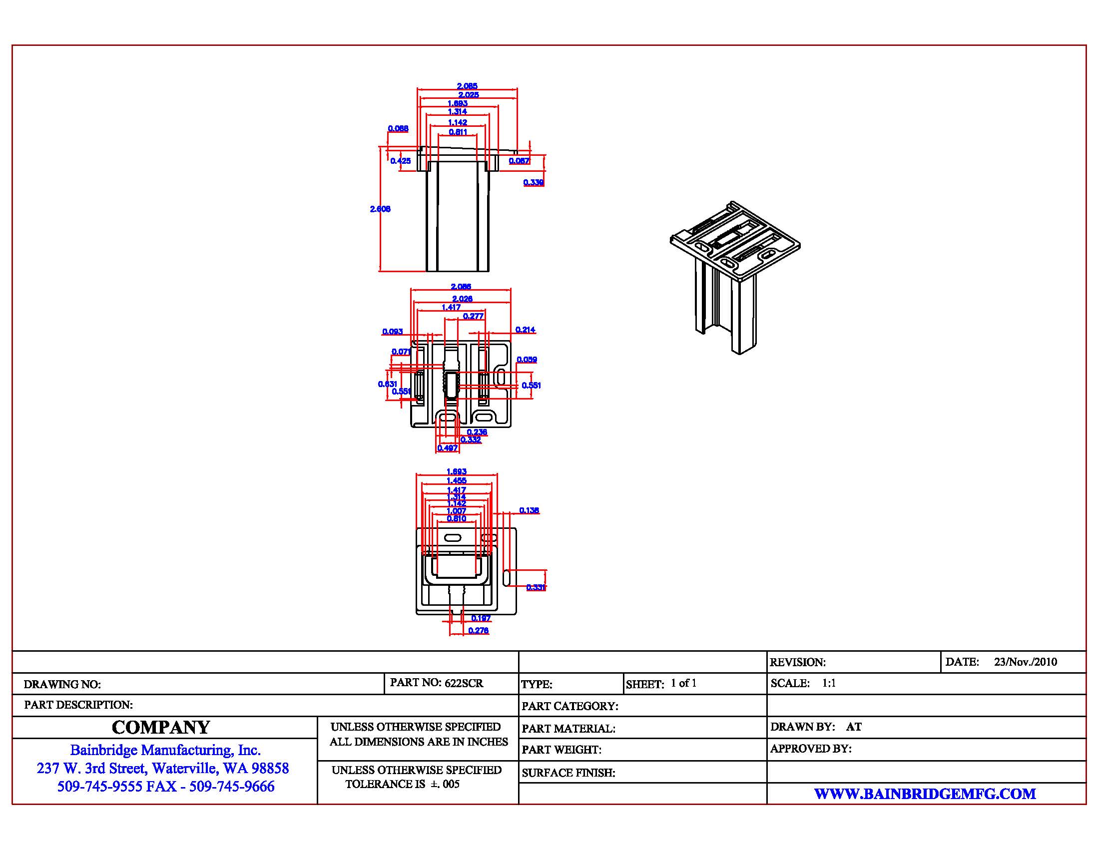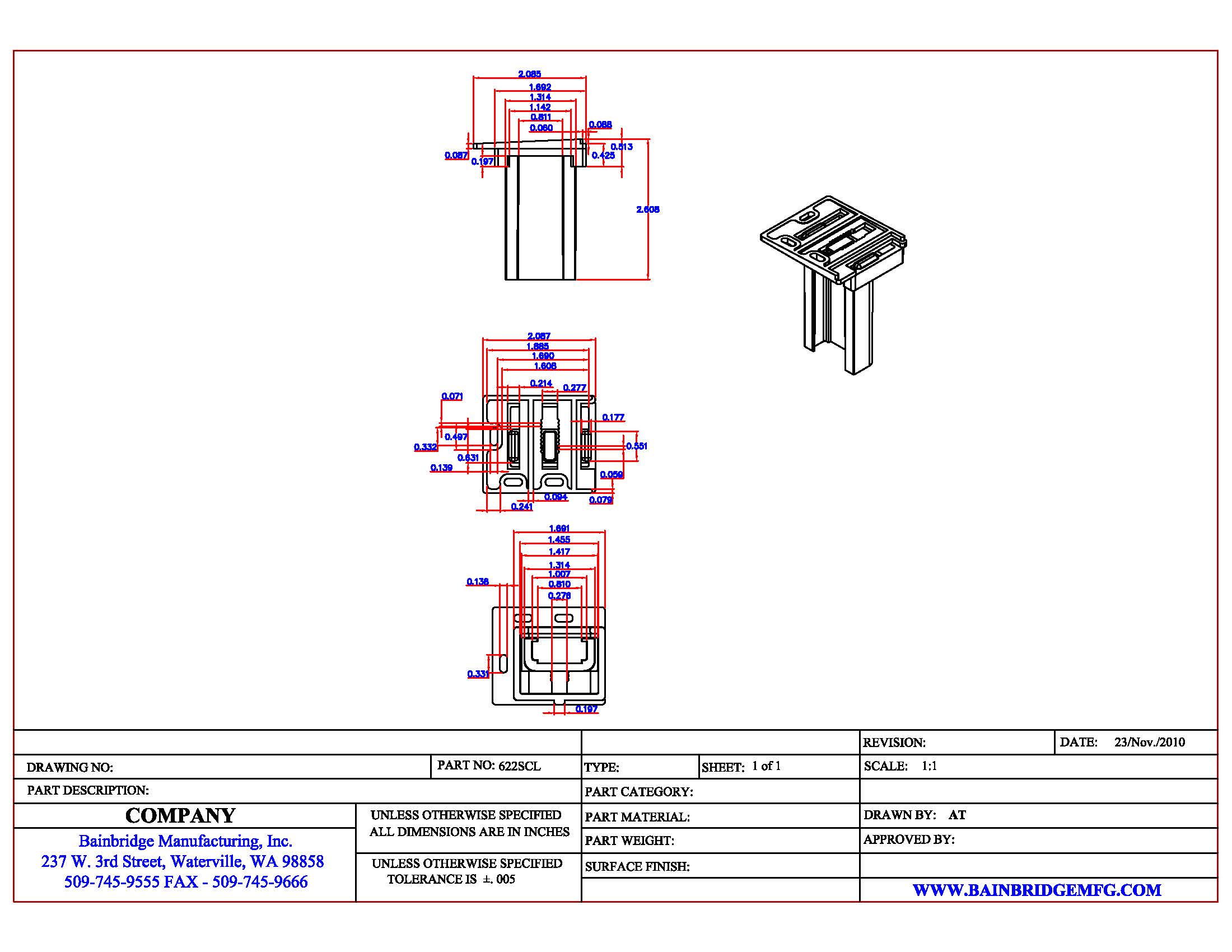 622 Rear Sockets 1″ X 7/16″ X 2-3/8″ $165.00 / 250 pcs